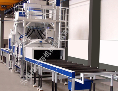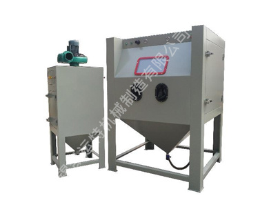噴砂房左右兩側(cè)各配有一臺(tái)電動(dòng)工作小車,方便操作員噴砂作業(yè),整個(gè)噴砂房?jī)?nèi)襯耐磨損、降噪音的橡膠襯板